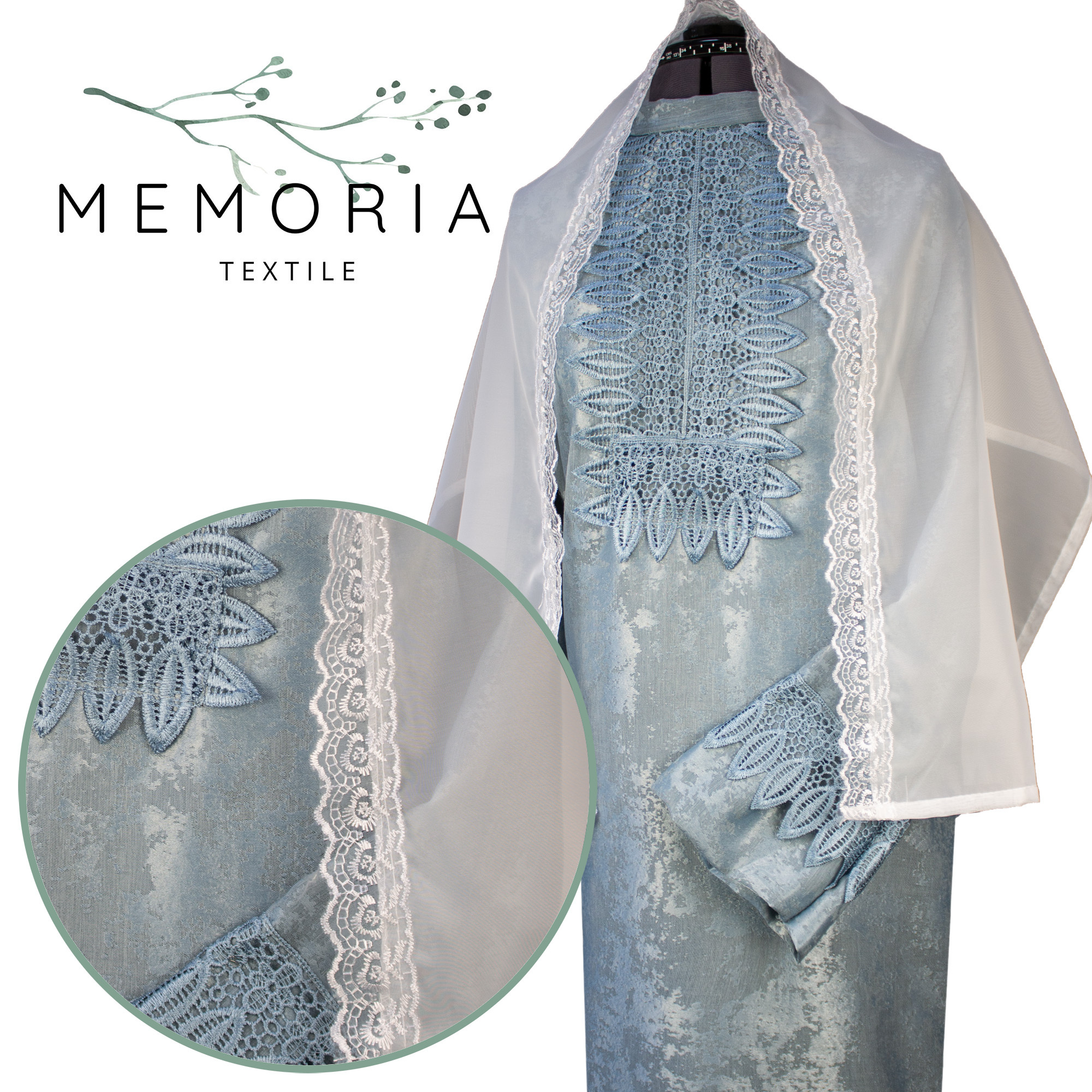 Платье ритуальное "Элит-2" с шарфом серо-голубое (мрамор)