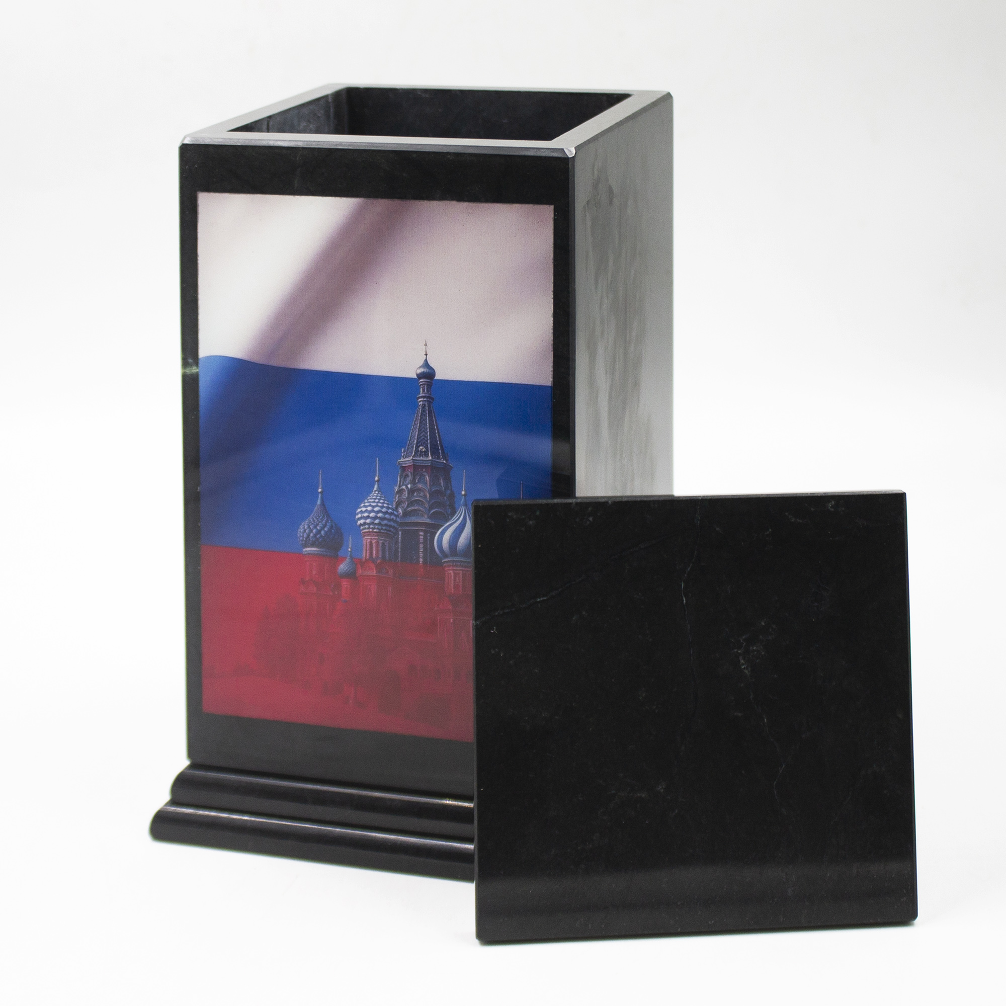 Погребальная урна с лаконичным дизайном и изяществом полированного доломита, с цветной печатью.