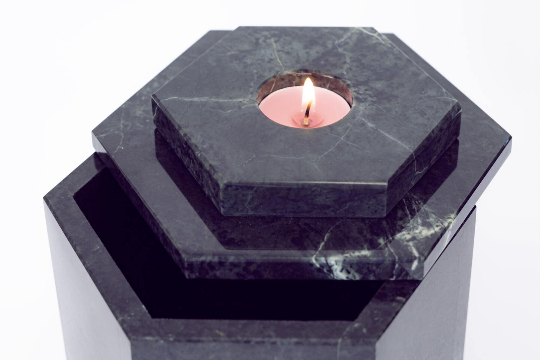 Урна для праха из змеевика в форме шестигранника. Размер: высота...