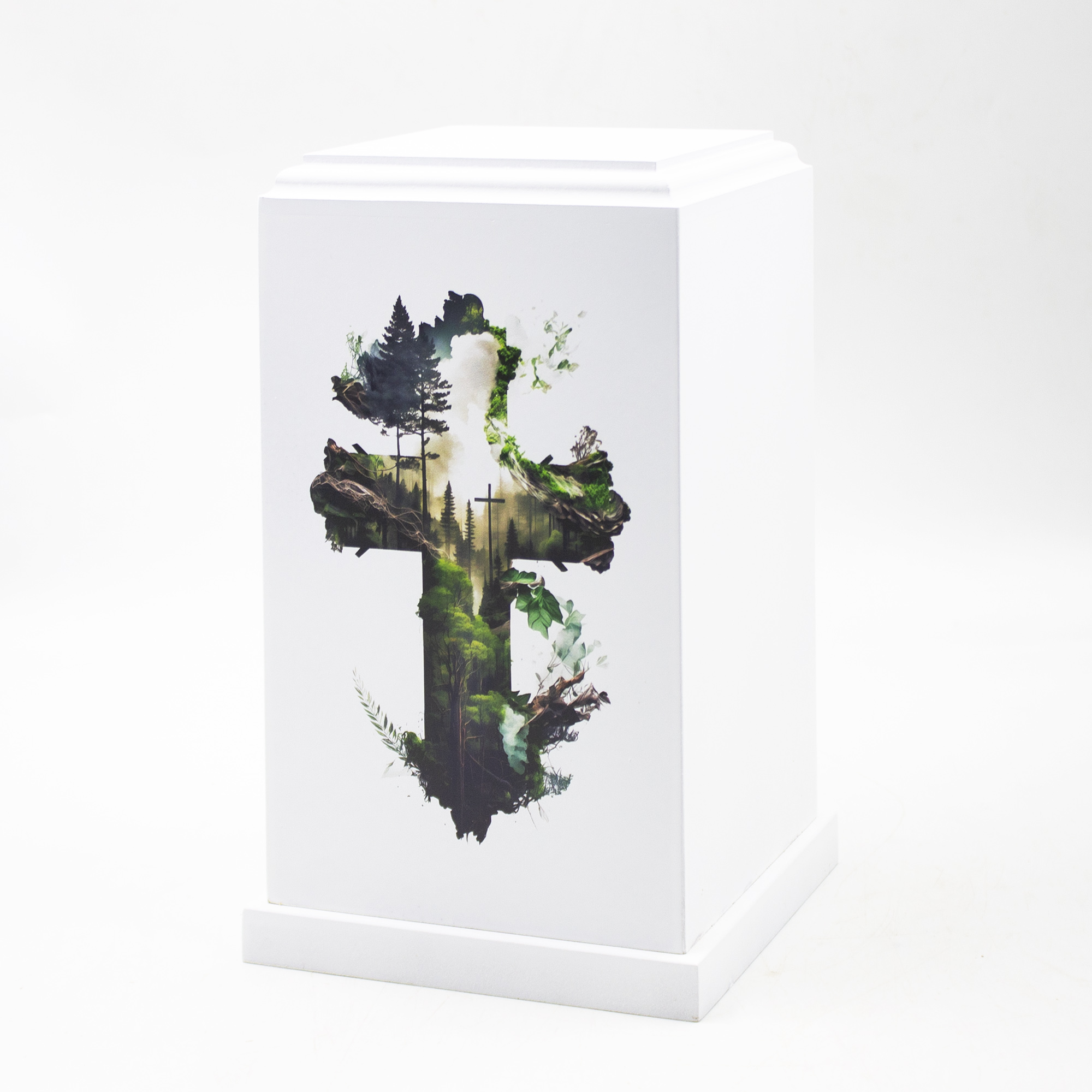 Новые урны для праха "Реквием" изготовлены из МДФ и покрыты эмалью. Прямая цветная печать.
