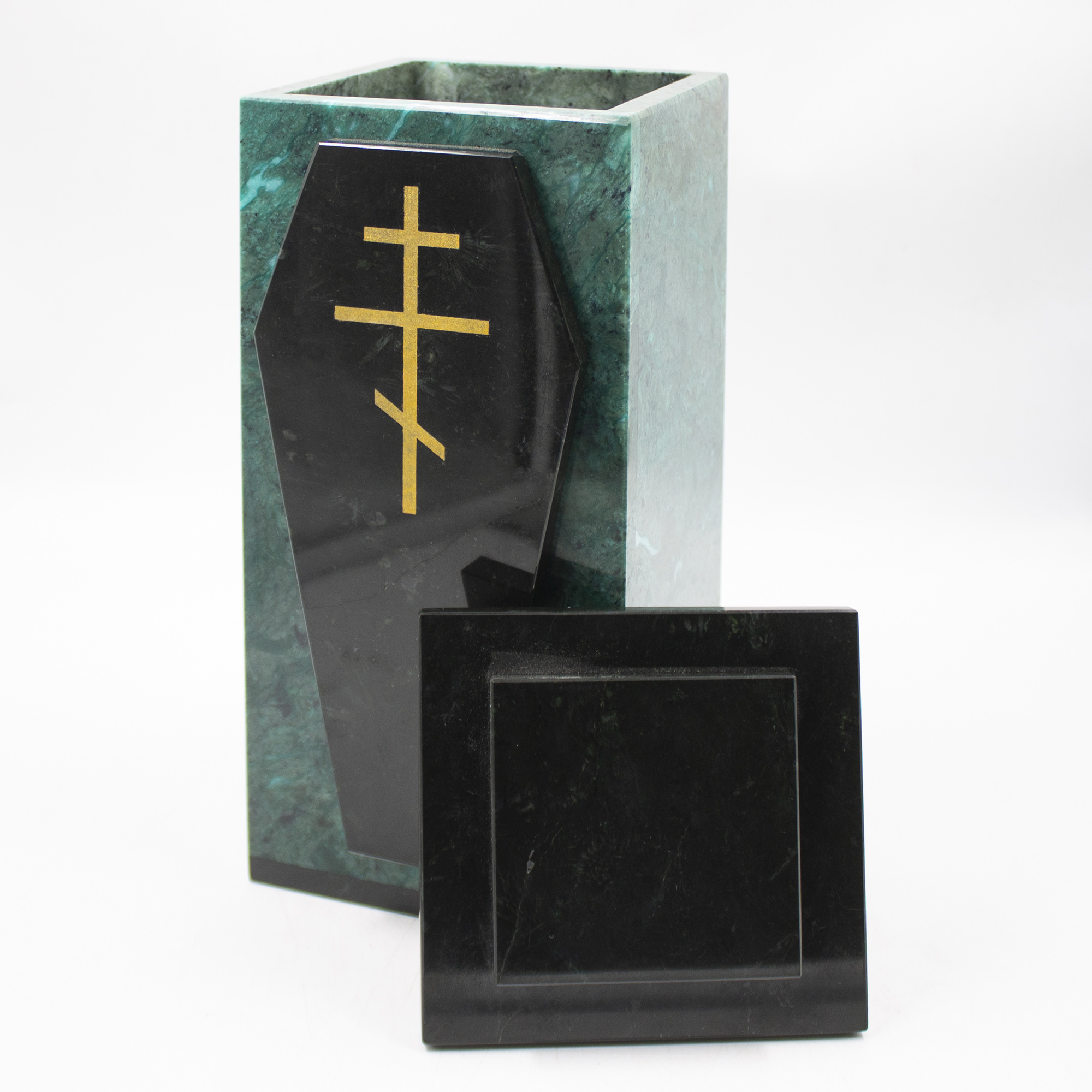 Необычный дизайн урны для праха и изящество полированного змеевика и доломита.