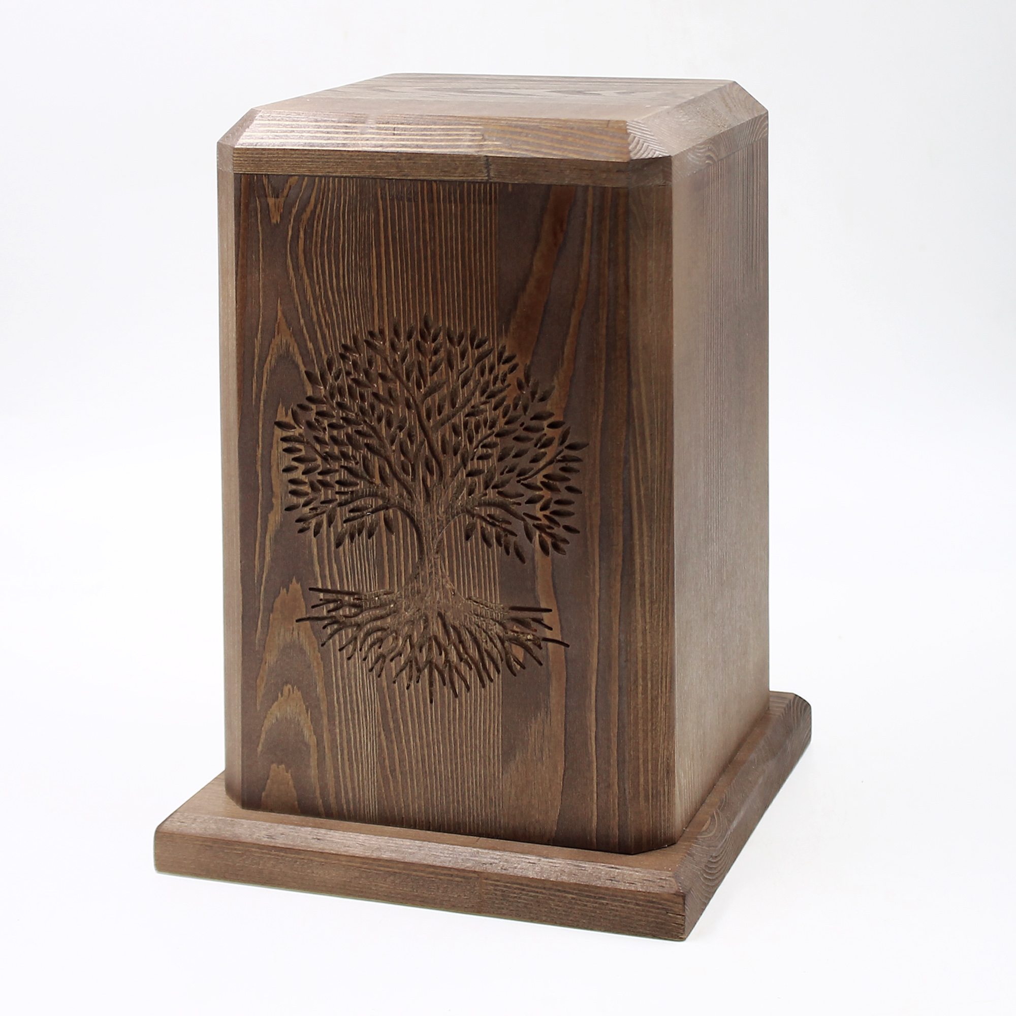 Урна для праха из натурального ясеня в форме прямоугольной колонны с декоративной гравировкой "Дерево".